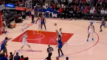 第三节比赛,唐斯45度三分空心入网,尼克斯第三节开局将分差缩小至8分。
